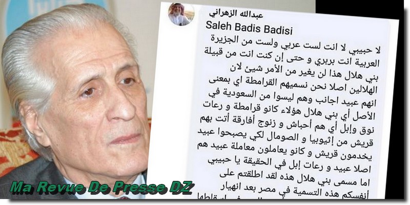 Dans un commentaire sur facebook, un Saoudien du nom de Abdellah El Zahrani répond et donne un petit cours d’histoire à un jeune algérien qui se fait appeler Saleh Badis Badisi.