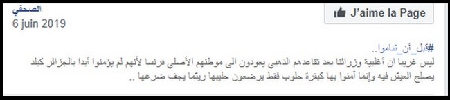 « Il n’est pas étrange que la majorité des nos ministres après leur retraite d’orée rejoignent leur patrie d’origine. Il n’ont jamais cru que l’Algérie était un pays dans lequel on pouvait vivre. Il l’ont toujours vu comme une vache laitière … »