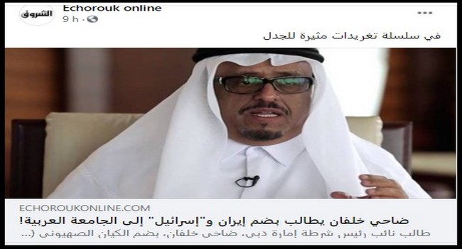 Le chef adjoint de la police à Dubaï Dhahi Khalfan a appelé dans un tweet publié hier samedi 12 décembre, à l’adhésion d’Israël au sein de « la Ligue des Etats arabes » qu’il appelle à rebaptiser : Ligue du Moyen-Orient.