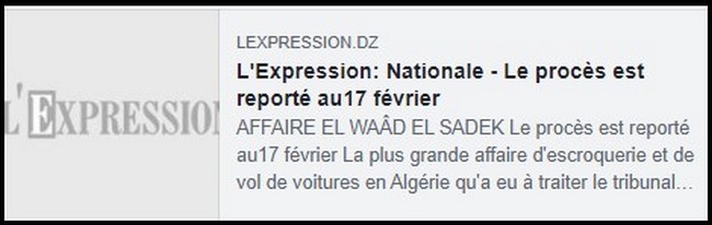 Un article paru dans le quotidien l’Expression daté du 30 janvier 2016, ci-joint, en donne un aperçu.