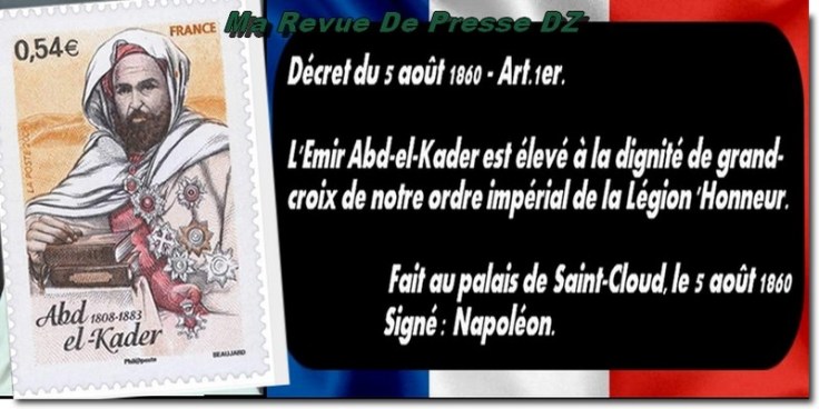 Problème : Georges Washington est décédé 31 ans avant la colonisation française (1830) et 8 ans avant la naissance de l’Émir Abdelkader. En effet, le président américain est né le 22 février 1732 et est décédé le 14 décembre 1799. Quand l’Émir Abdelkader est né le 6 septembre 1808 et est mort le 26 mai 1883.