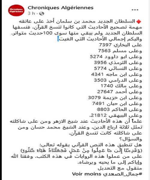 Le nouveau prince héritier Mohamed Ben Salman a pris sur lui de corriger les hadith. Selon ce qu’avait expliqué le prince en avril 2021, lors de l’annonce de la démarche, il s’agit de débarrasser l’islam de « toutes ses scories et des faux hadiths ».
