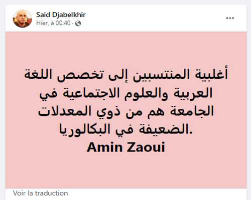 Amin Zaoui : « Ma majorité des étudiants qui optent pour un cursus universitaire langue arabe et science sociale sont ceux qui ont les plus mauvaises notes à l’examen du Baccalauréat ».