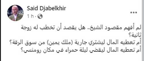 Said Djabelkhir : « Je n’ai pas compris. Est-ce qu’il veut dire qu sa femme doit lui trouver une autre femme à épouser?