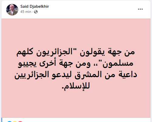 « D’un côté ils disent que ‘les algériens sont tous musulmans » et d’un autre, ils invitent un cheikh d’orient pour convertir les algériens à l’islam. »
