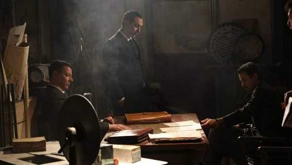 Benmhidi( Khaled Benaissa , Abane( Nidal Niddal El Mellouhi ) et Benyoucef Benkhedda( Mohmed Mohamed Frimehdi ) , en Réunion pour décider de l’appellation du journal qu’ils viennent de lancer ; le combattant devenu « El Moudjahidine «