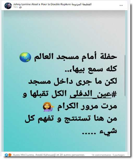 Un internaute note qu’une simple fête organisée à Bouira durant le ramadan 2022, après les horaires de prières, sur la grande place de la commune où se trouve une mosquée, avait pourtant fait les choux gras de tous les médias (télés, presse et sites). L’imam de la mosquée avait même traité les habitants de tous les noms d’oiseau, via le mégaphone de ce lieu sensé sacrée. Des insultes d’une vulgarité crues, filmées et largement diffusées, « digne d’une véritable petite frappe de quartier » émanant d’un homme de religion.