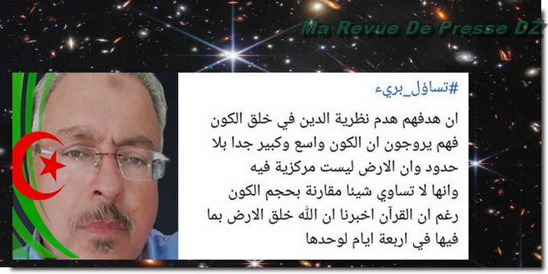 C’est ce que soutient le professeur musulman algérien Kaddour Abdallah Tani qui conteste la véracité de la photo de l’Univers publiée cette semaine par la Nasa. Il appelle les musulmans et tous les algériens à ne pas se laisser berner par « la propagande Darwiniste de l’occident ».