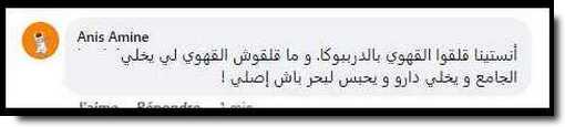 « Le Kahwi et sa derbouka dérange Anes Tina. Mais le Kahwi qui laisse la mosquée et sa maison et squatte toute la plage pour faire sa prière, ne le dérange pas ».
