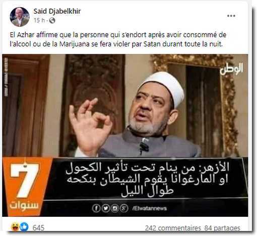 Said Djabelkhir : « El Azhar affirme que la personne qui s’endort après avoir consommé de l’alcool ou de la Marijuana se fera violer par Satan durant toute la nuit. »