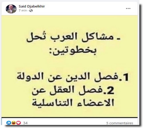 Dans une publication facebook, l’islamologue Said Djabelkhir revient, une fois encore, sur les travers qu’on peut retrouver dans le monde arabo-musulman. Il relaie ainsi, une réflexion pour le moins pertinente.