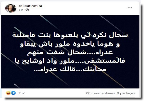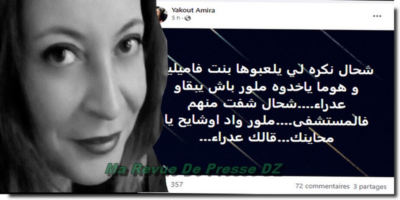 Dr Amira Bouraoui : « Qu’est-ce que je déteste celles qui se font appeler « fille de famille » alors qu’elle se font culbuter par derriére pour rester vierge. J’en ai vu passé à l’hôpital. Elles ont le derriére aussi large et profond que le tunnel de Oued Ouchayeh et on vous racontera qu’elle est vierge ».