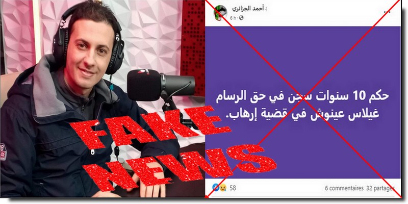 Plusieurs pages facebook relaient que le tribunal de Bejaia a condamné le caricaturiste Ghilas Aïnouche à 10 ans de prison pour terrorisme.