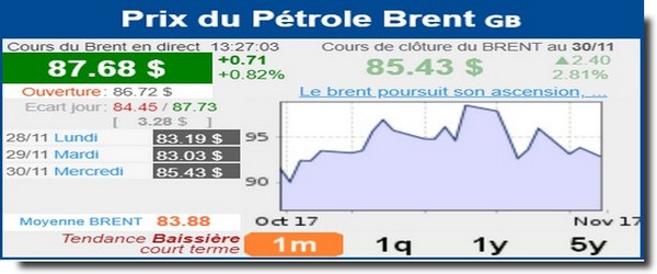 Ce jeudi vers 13H27 (GMT), le Brent s’affiche à 87.68 $, en hausse de 0.82%.