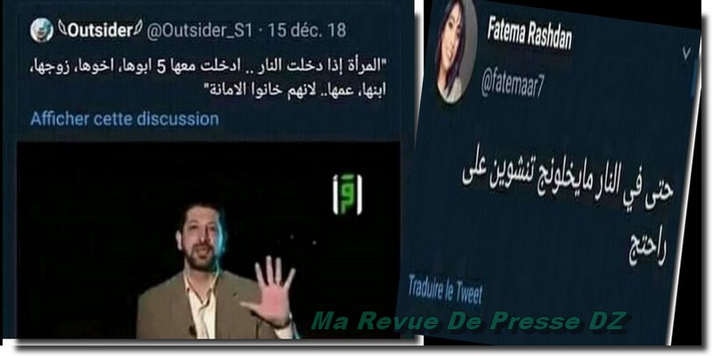 Fetwa : » Si une femme va en enfer, 5 hommes de sa famille l’accompagneront parce qu’ils n’auront pas été à la hauteur. Soit, son père, son mari, son fils, son frère et son cousin. »