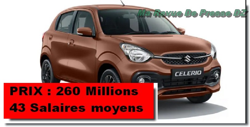 Dans son édition de ce vendredi 30 décembre, le site Algérie Expat rapporte que la nouvelle Suzuki Celerio est disponible sur le marché algérien de l’automobile. Et à l’instar des autres marques modèles vendus en Algérie, son prix est tout simplement hallucinant au vu du pouvoir d’achat des algériens qui reste un des plus bas du Maghreb et de l’espace arabe. En effet, selon le dernier rapport de l’Organisation international du travail (OIT), le salaire moyen en Algérie est estimé à 303$.