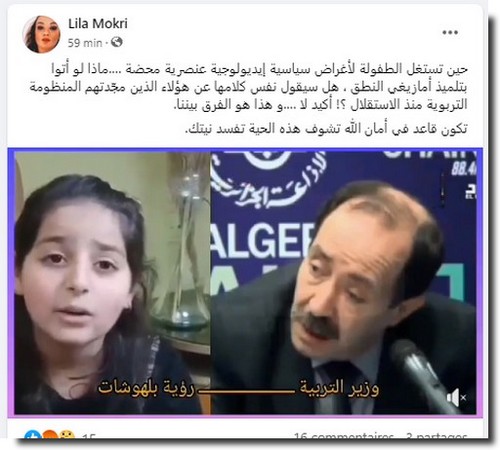 Dans une vidéo « abjecte » au relent raciste, qui circule sur les réseaux sociaux, une jeune écolière récite un texte dans un arabe académique parfait s’en prenant au programme scolaire qui l’oblige à apprendre l’histoire et la langue Amazigh.