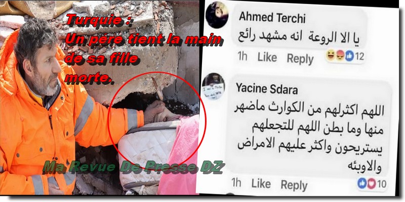Dans une publication sur sa page facebook « Chronique Algériennes » relaie le post du militant Hichem Bey. Ce dernier a, en effet publié, des commentaires d’internautes algériens évoquant le séisme qui a frappé la Turquie et la Syrie et dont les morts se comptent par milliers…