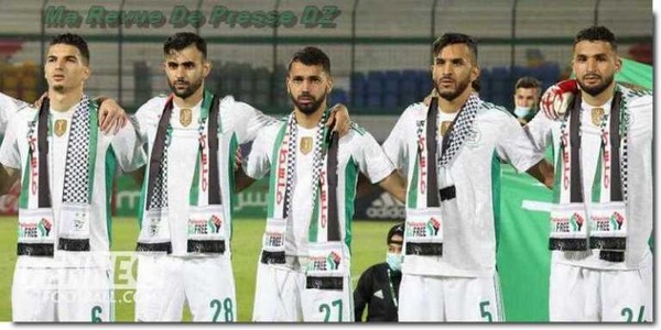 L’équipe nationale d’Algérie portant le drapeau Palestinien :