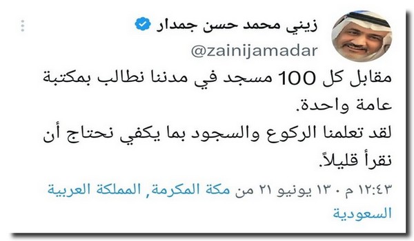 Sur sa page facebook; l’islamologue Said Djabelkhir relaie le tweet de l’intellectuel Saoudien, Zini Mohamed Hacen Jendar