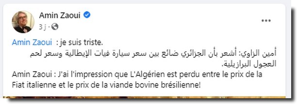 Amin Zaoui : « Je suis triste. J’ai l’impression que L’Algérien est perdu entre le prix de la Fiat italienne et le prix de la viande bovine brésilienne ! »