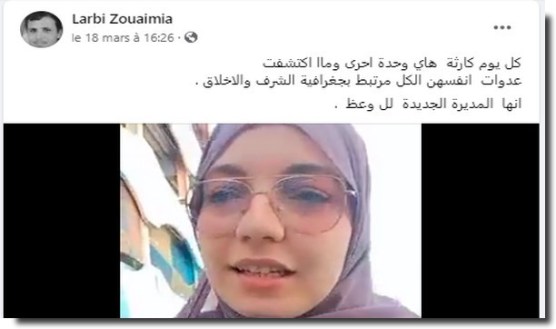 Larbi Zouaimia : « Pas une journée sans catastrophe. Je viens juste d’en rencontrer une. Des ennemies d’elles-mêmes. Voici la nouvelle directrice de la bonne voie. »
