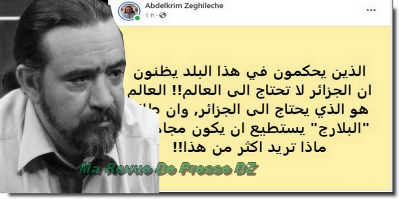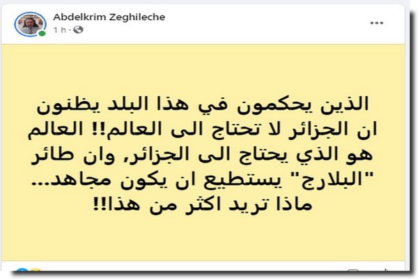 Abdelkrim Zeghileche : « Ceux qui gouvernent ce pays pensent que l’Algérie n’a pas besoin du monde !! et que c’ets le monde qui a besoin de l’Algérie. Ces gouvernants pensent également qu’un cigogne peut-etre un moudjahid… Que veux-tu de plus !! »