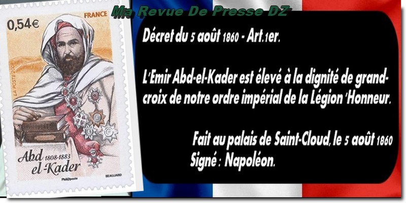 L’Histoire retient que l’Émir Abdelkader, après avoir rendu les armes et signé le traité de Tafna en 1837 qui reconnaissait la souveraineté de la France sur l’Algérie et l’Afrique, a été décoré de la légion d’honneur par… Napoléon. L’Etat colonial français lui accorda une pension à vie à lui ainsi qu’à toute sa descendance.