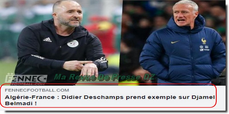 « Depuis sa prise de fonction à la tête de l’équipe nationale algérienne, les décisions du sélectionneur Djamel Belmadi sont souvent comparées à celles de l’entraîneur de l’équipe de France, Didier Deschamps », affirme ce journaliste, sans, toutefois, mentionner par qui et quand cette comparaison a été faite.
