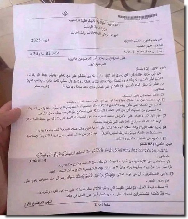 Un personnage controversé dans le monde musulman et banni dans plusieurs pays est mentionné et donné en référence en Algérie. Ce « compagnon du prophète » qui est accusé d’avoir inventé des centaines de hadith et menti sur plusieurs aspects de la vie du prophète de l’islam est mentionné et donné en référence dans le sujet de la matière éducation islamique de cette session du baccalauréat 2023 dont le coup d’envoi a été donné hier dimanche 11 juin et s’étalera jusqu’au 15 juin.