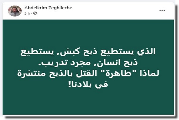 Abdelkrim Zeghileche : « Qui peut égorger un mouton, peut égorger un homme. C’est une affaire d’entrainement. Pourquoi le phénomène de crime par égorgement et si rependu dans notre pays ! »