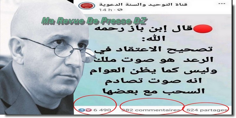 En effet, cette semaine, une incroyable publication de la page salafiste « Chaîne de la Sunnah », a enregistré plus de 6500 like « approbateurs » en l’espace de moins de 48h ! Dans son post, cette page explique le phénomène du tonnerre.