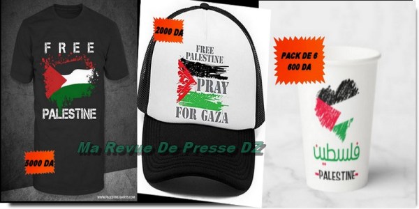 “Free Palestine”: T-Shirts , Casquettes, Gobelets en vente sur facebook DZ !